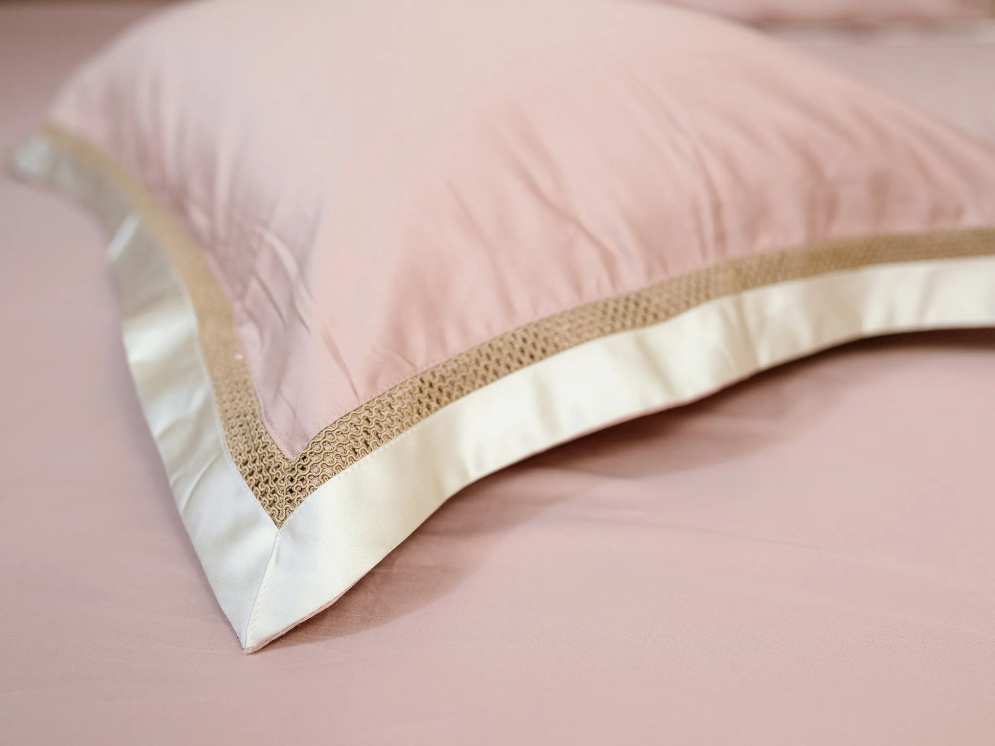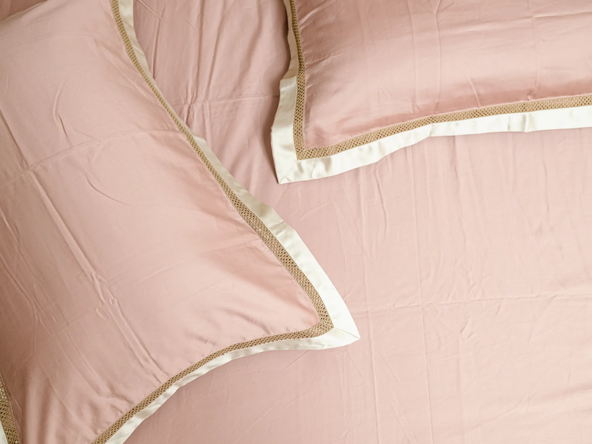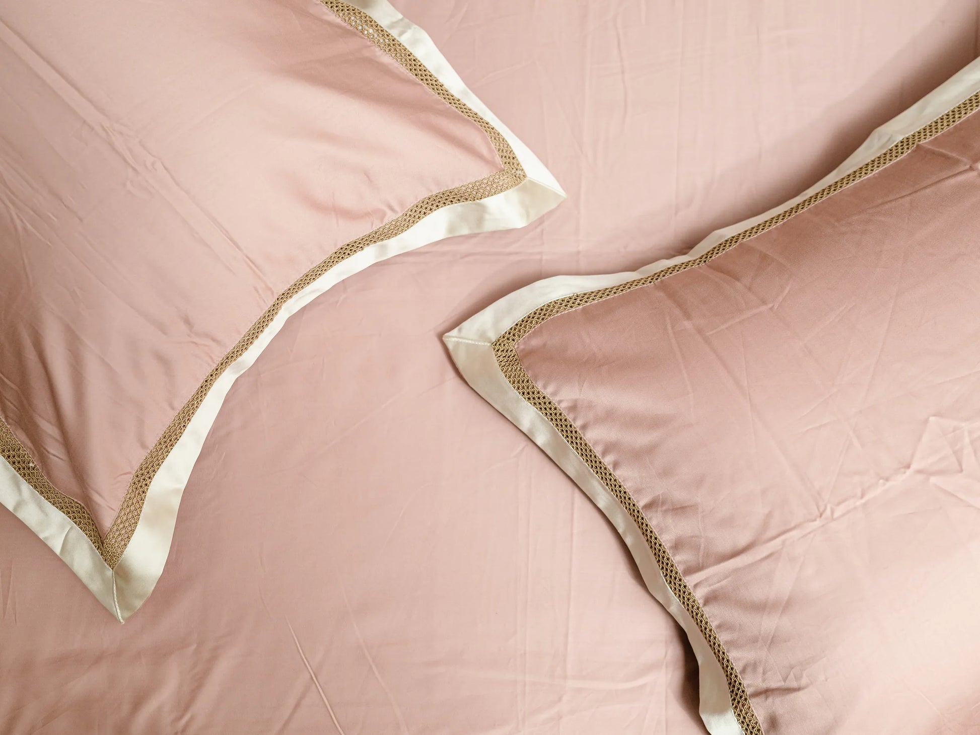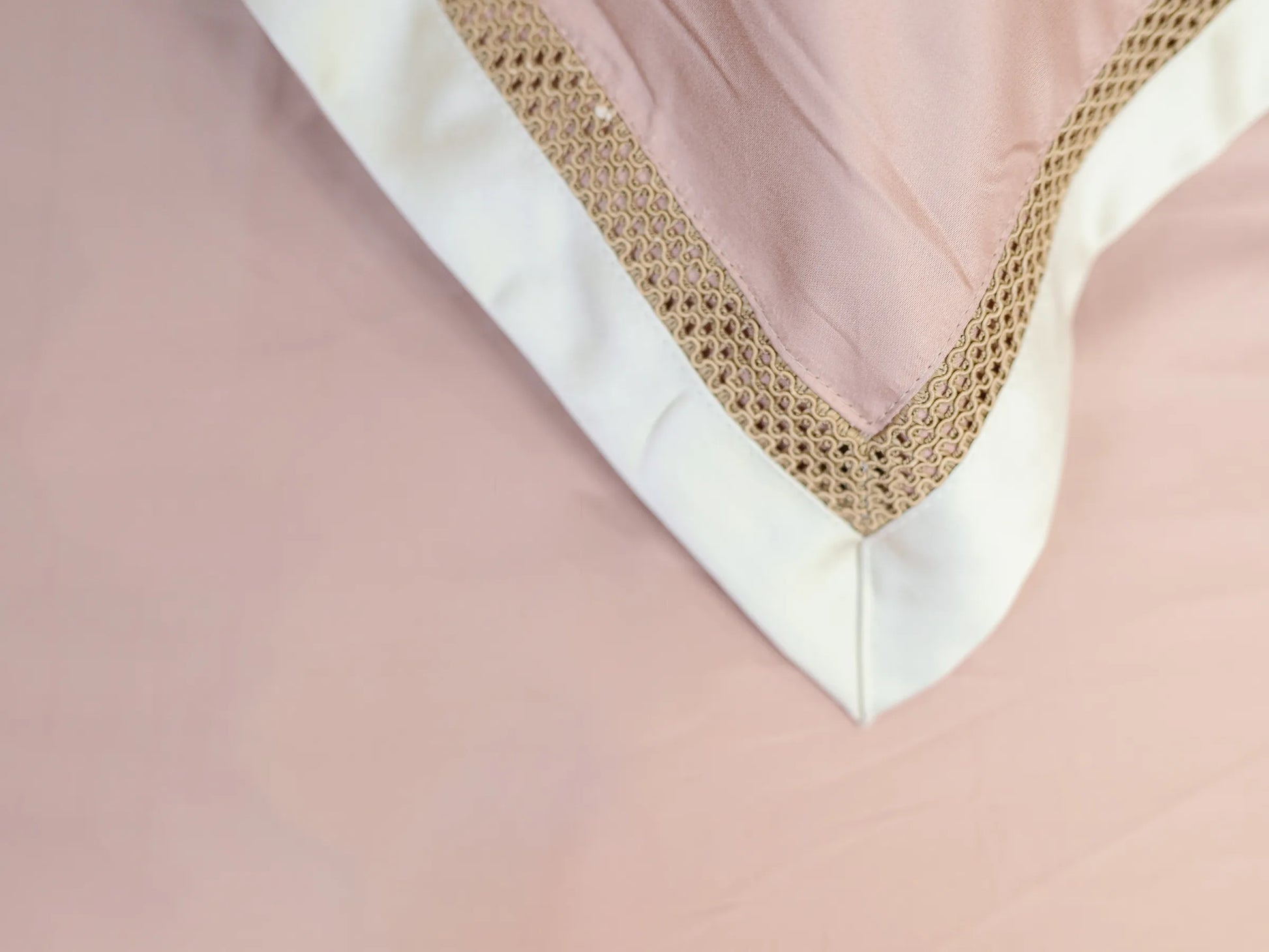 Experience the ultimate in refined living with this 100% organic cotton bedsheet, meticulously crafted with a 1000 thread count for a silky-smooth, breathable finish. The sophisticated dusty rose hue is elegantly framed by a delicate lace-trimmed border, offering a timeless design that elevates any bedroom aesthetic. Designed for the discerning luxury lifestyle, it provides unparalleled sleep comfort that stays cool and crisp throughout the night.