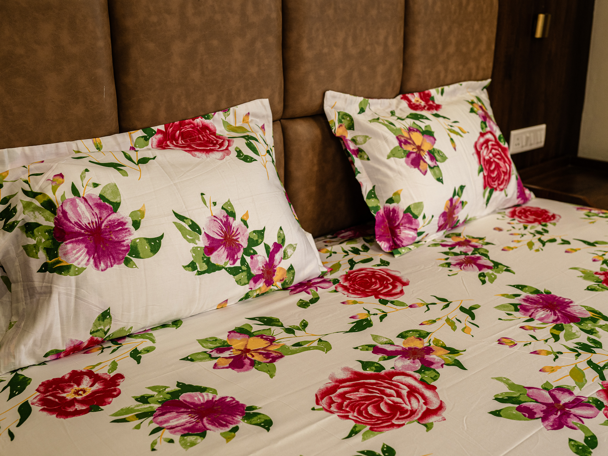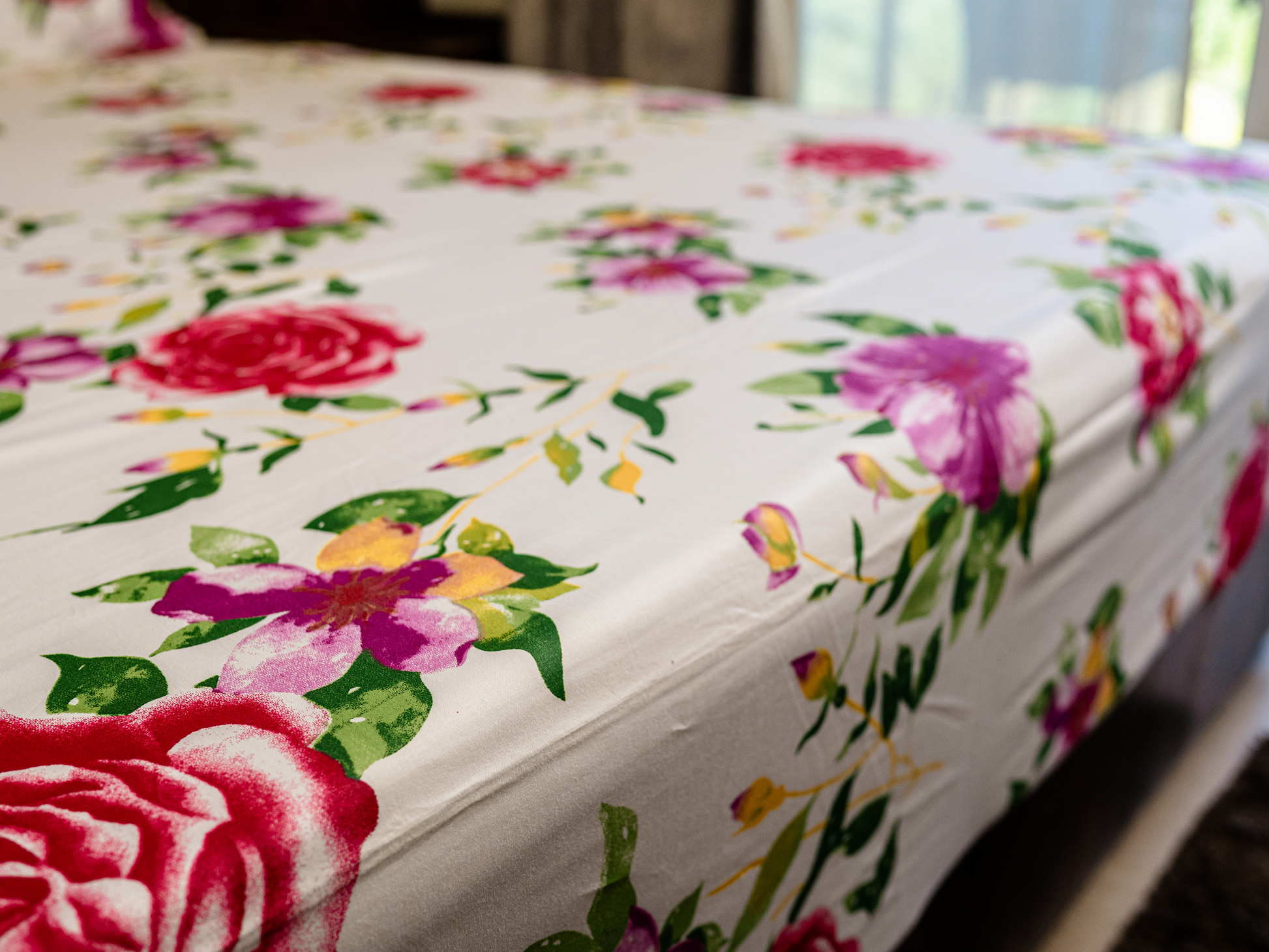 Elevate your bedroom into a sanctuary of elegance with this 100% organic cotton bedsheet, featuring a high-density 500 thread count for a crisp, hotel-quality feel. The sophisticated floral print brings a vibrant, nature-inspired charm to your space, perfectly complementing a luxury lifestyle defined by comfort and class. Breathable and exceptionally soft to the touch, this premium bedding offers the perfect blend of modern design and sustainable luxury for a restorative night's sleep.