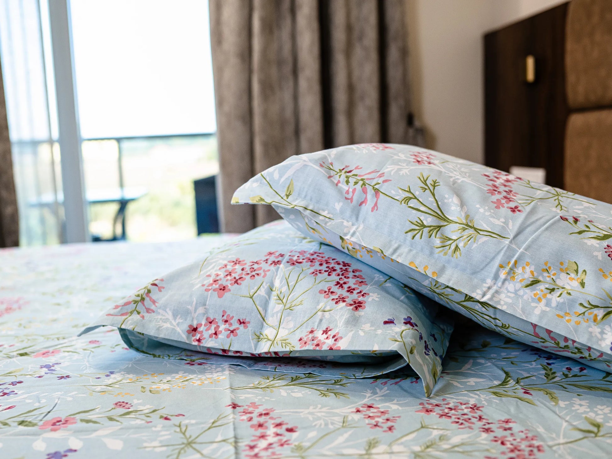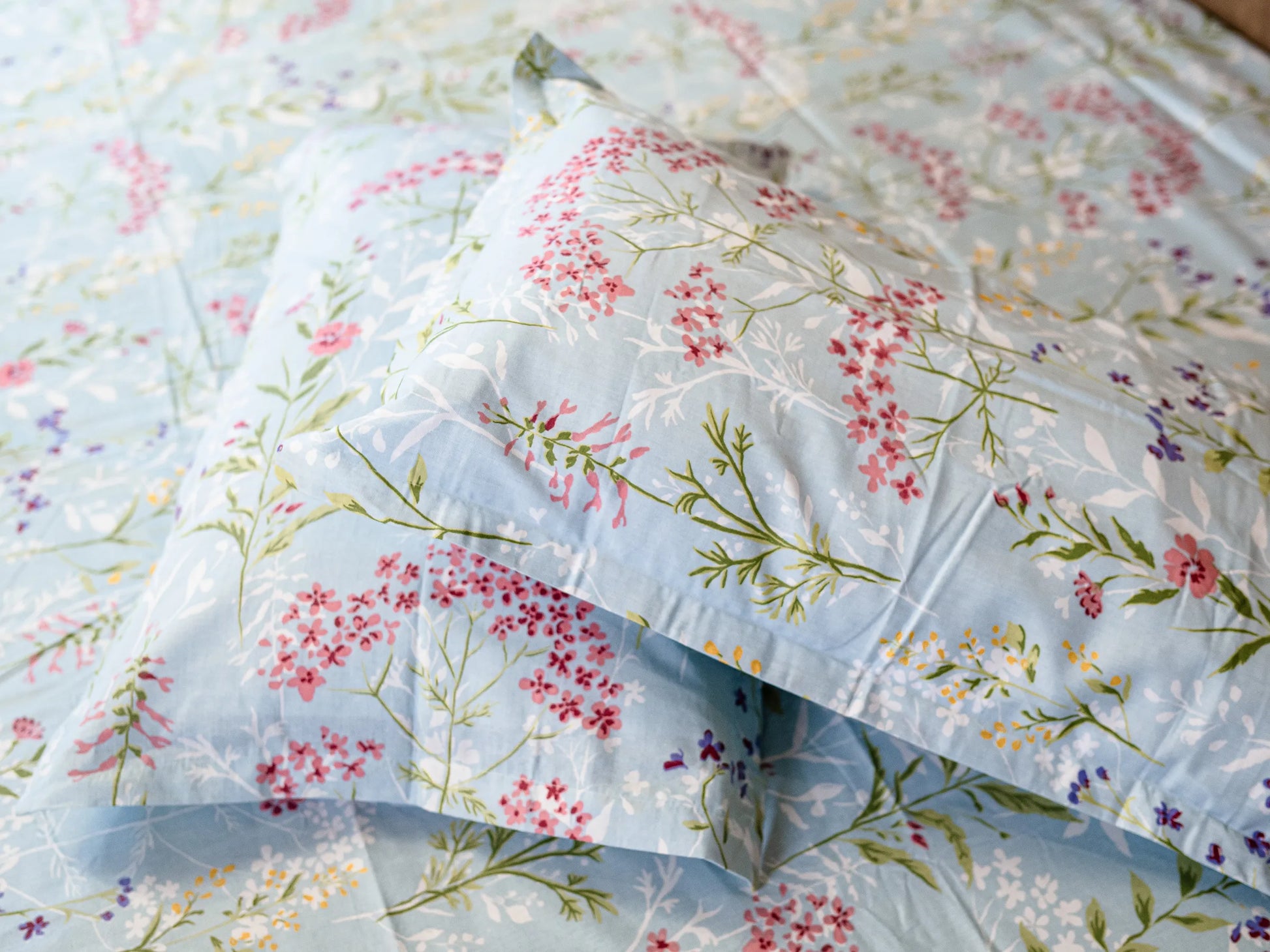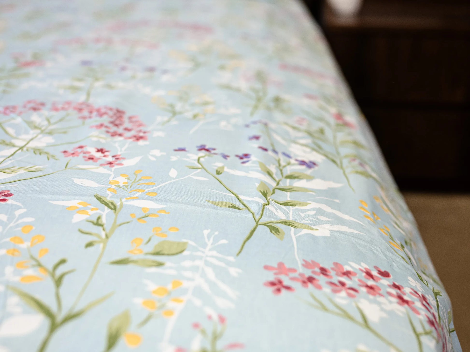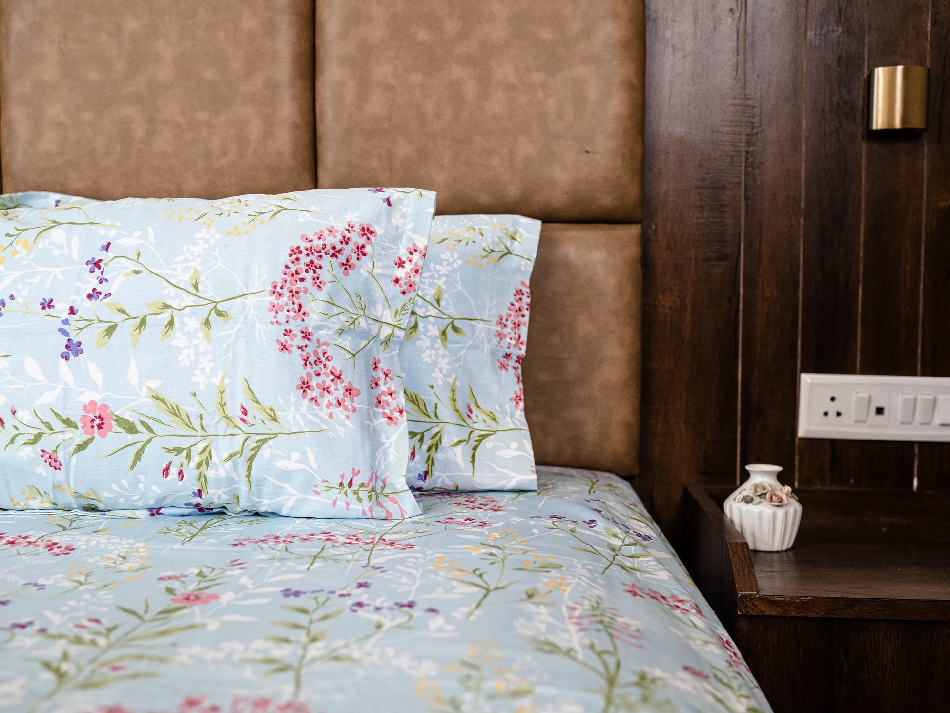 Indulge in the ultimate sleep experience with this 500 thread count luxury bedsheet, meticulously crafted from 100% organic cotton for unparalleled softness and breathability. The serene mint blue fabric is adorned with an elegant floral design, bringing a refreshing botanical charm and a sophisticated touch of nature to your bedroom sanctuary. Designed for a luxury lifestyle, this premium set ensures a cooling, comfortable night's rest while elevating your home décor with its timeless aesthetic and superior quality.