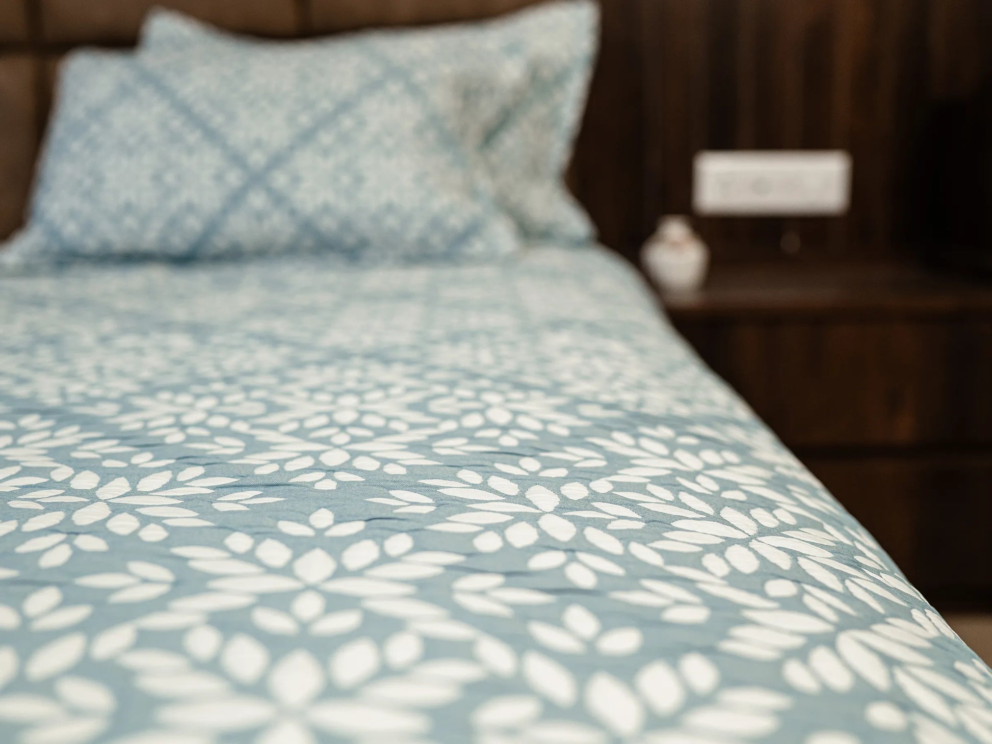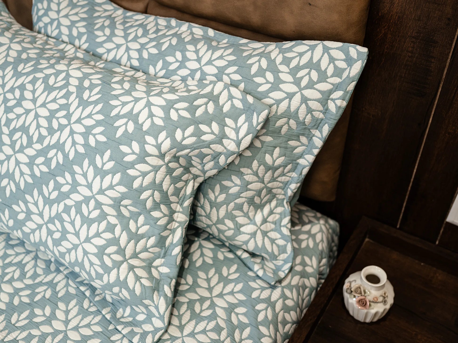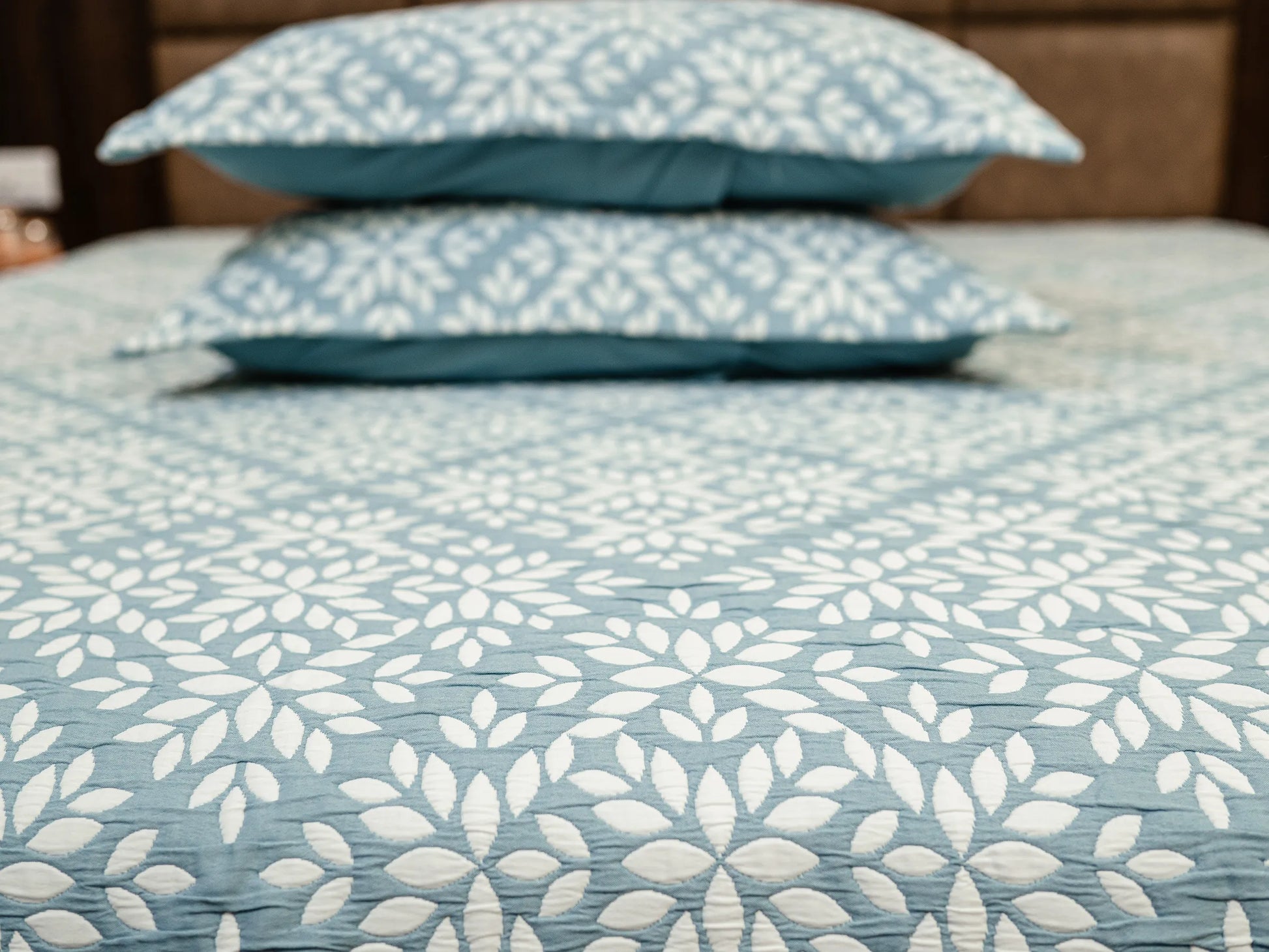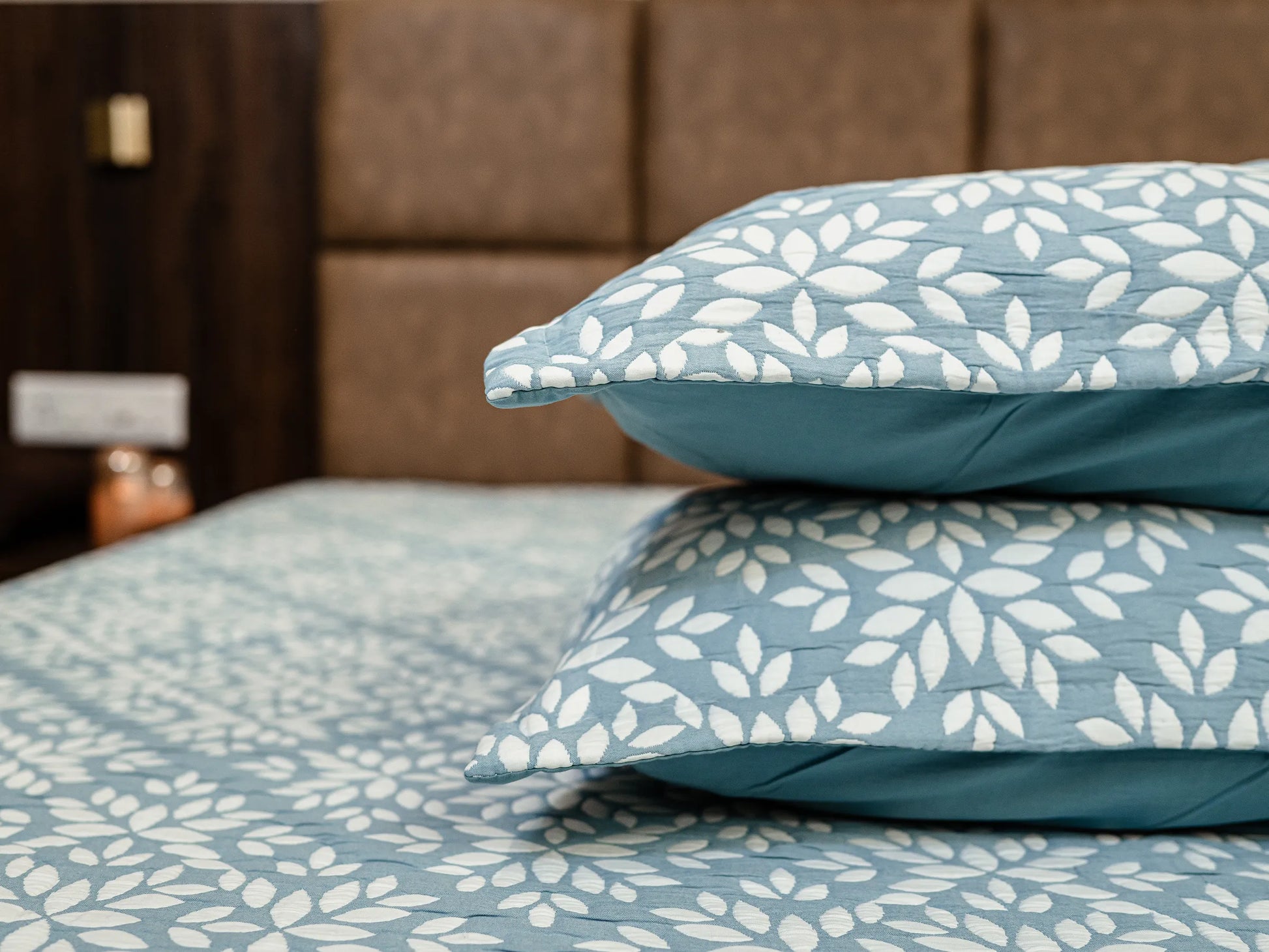 Experience the pinnacle of refined living with this 700-thread-count luxury bedsheet, meticulously crafted from 100% organic cotton for a breathable, skin-friendly touch. The elegant leaf-motif design, set against a calming dusty blue and ivory palette, transforms your bedroom into a sophisticated sanctuary that reflects a high-end lifestyle. Engineered for ultimate sleep comfort, this set offers a buttery-soft texture that ensures every night feels like a stay in a five-star retreat.