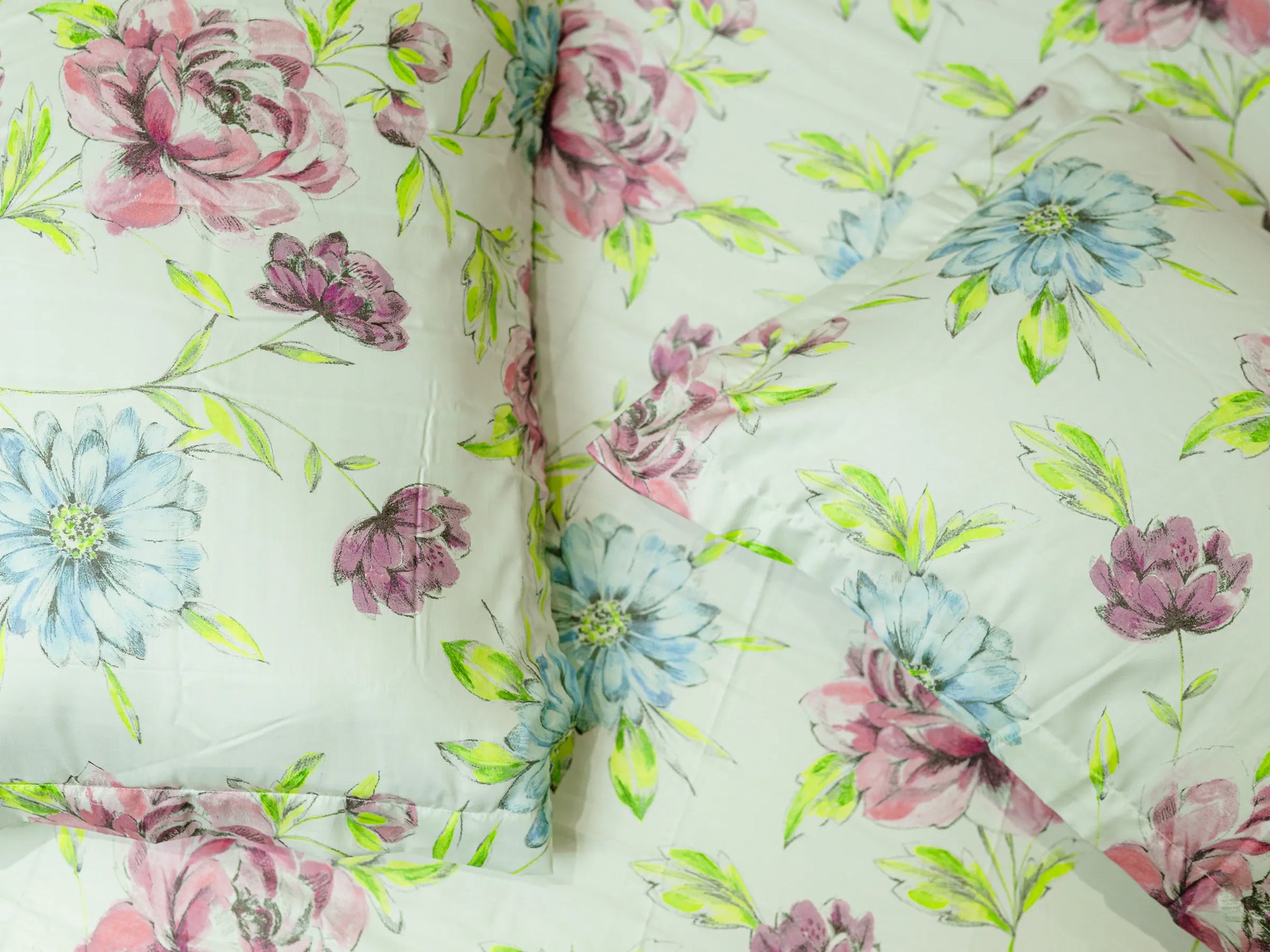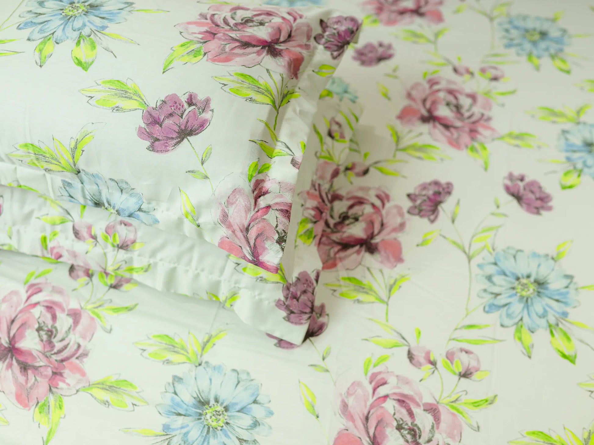 Experience the pinnacle of a luxury lifestyle with this exquisite 500 thread count bedsheet, meticulously crafted from 100% organic cotton for unparalleled softness and breathability. The design features a stunning hand-painted floral motif in serene hues of dusty rose and cornflower blue, accented by vibrant lime leaves to bring a fresh, artistic elegance to your bedroom. Engineered for ultimate sleep comfort, its silky-smooth texture offers a cooling, restorative embrace that transforms every night into a five-star retreat.
