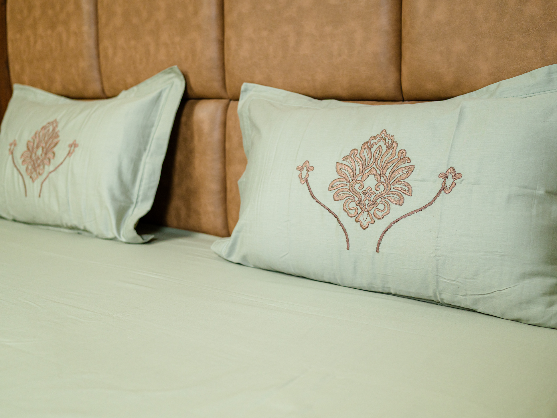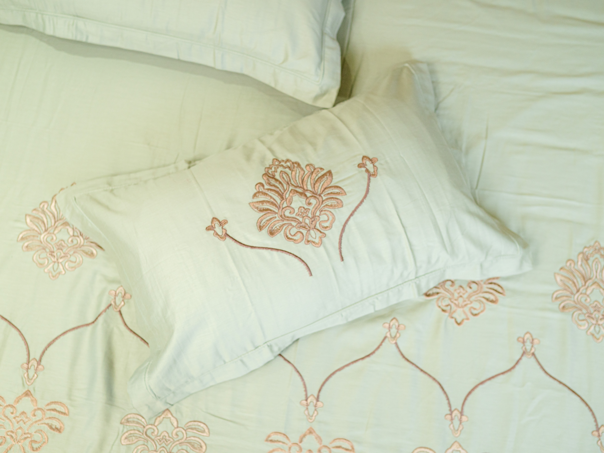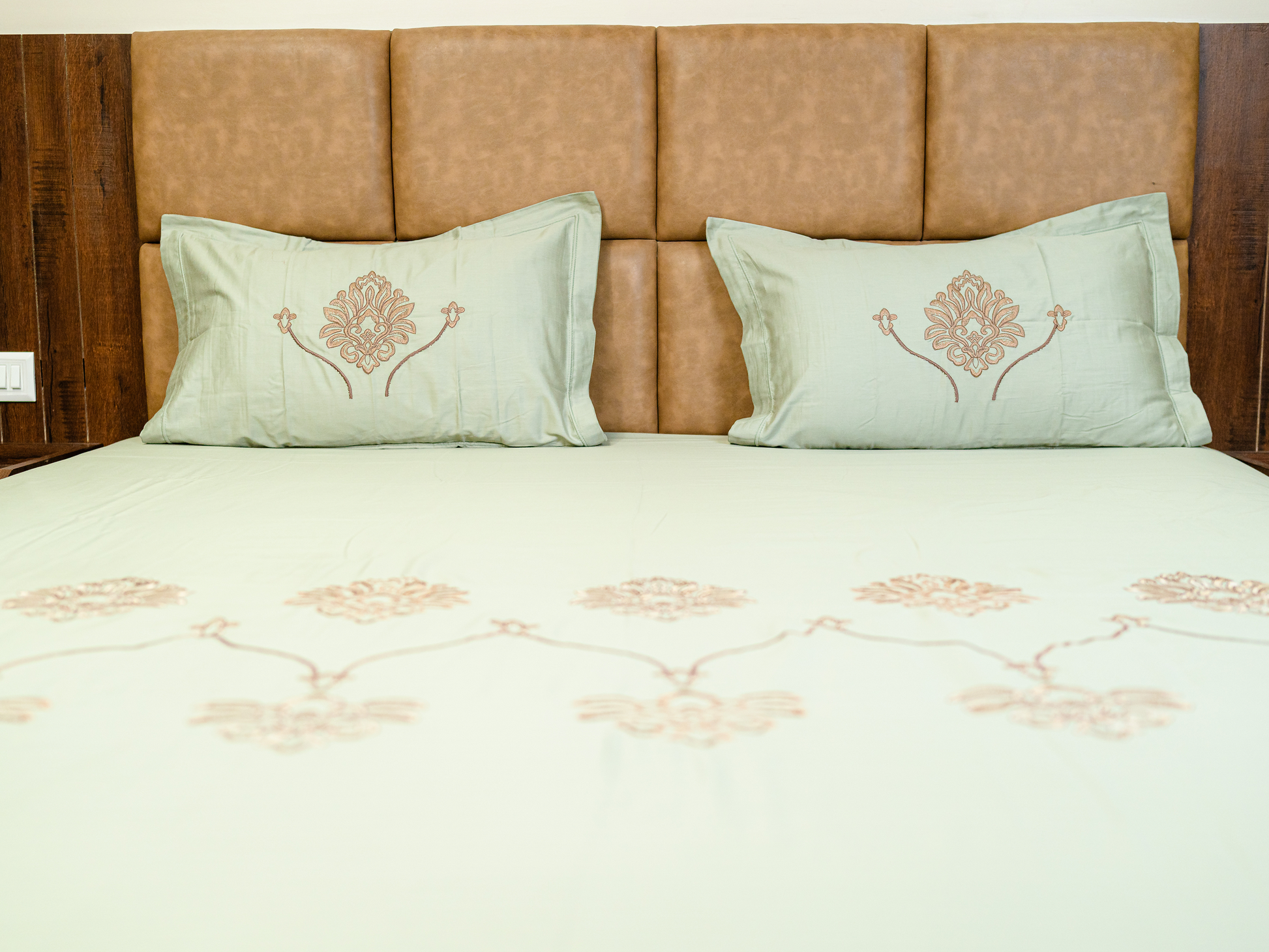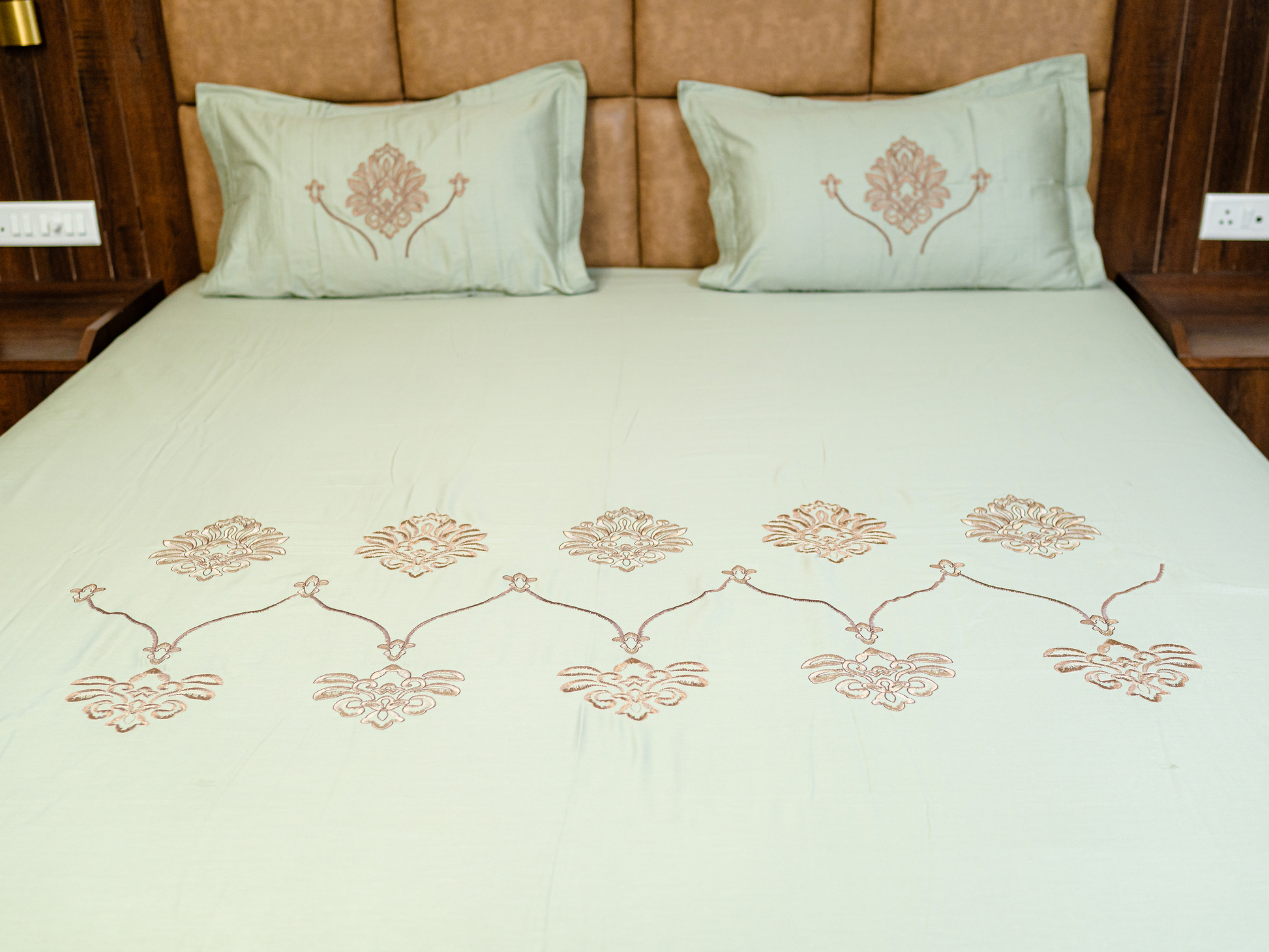 Experience the ultimate in refined living with this luxury bedsheet, meticulously crafted from 100% organic cotton with a premium 500 thread count for a silky-smooth, breathable feel. The elegant design features intricate, earth-toned embroidery on a serene cream canvas, adding a sophisticated aesthetic to your sanctuary while promoting deep, restorative sleep comfort. Elevate your daily ritual and embrace a sustainable, high-end lifestyle with this exquisite blend of timeless artistry and superior textile quality.