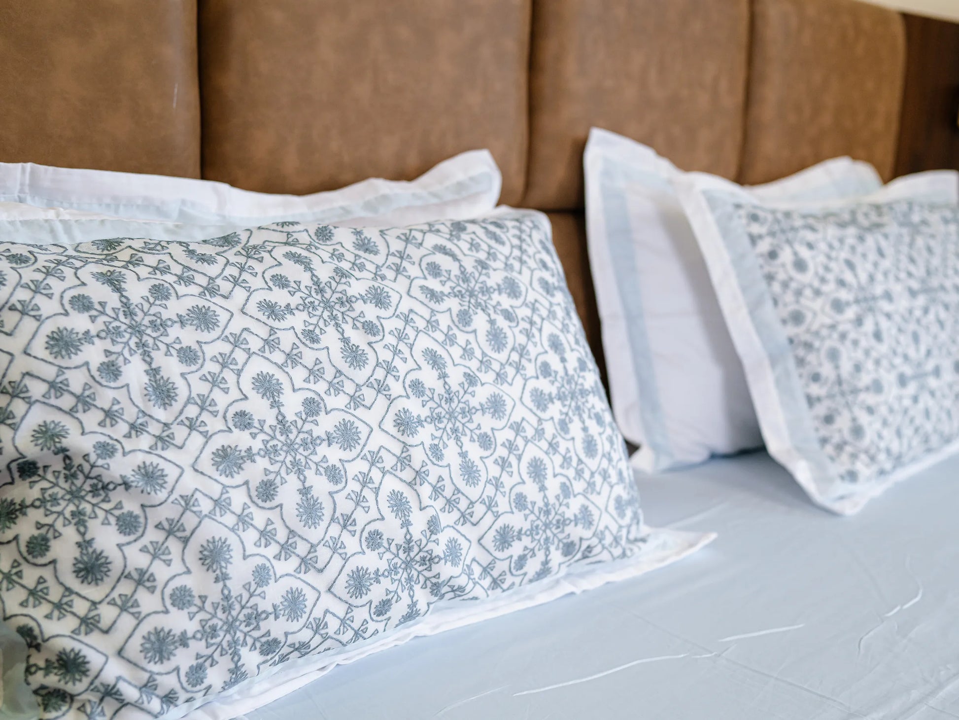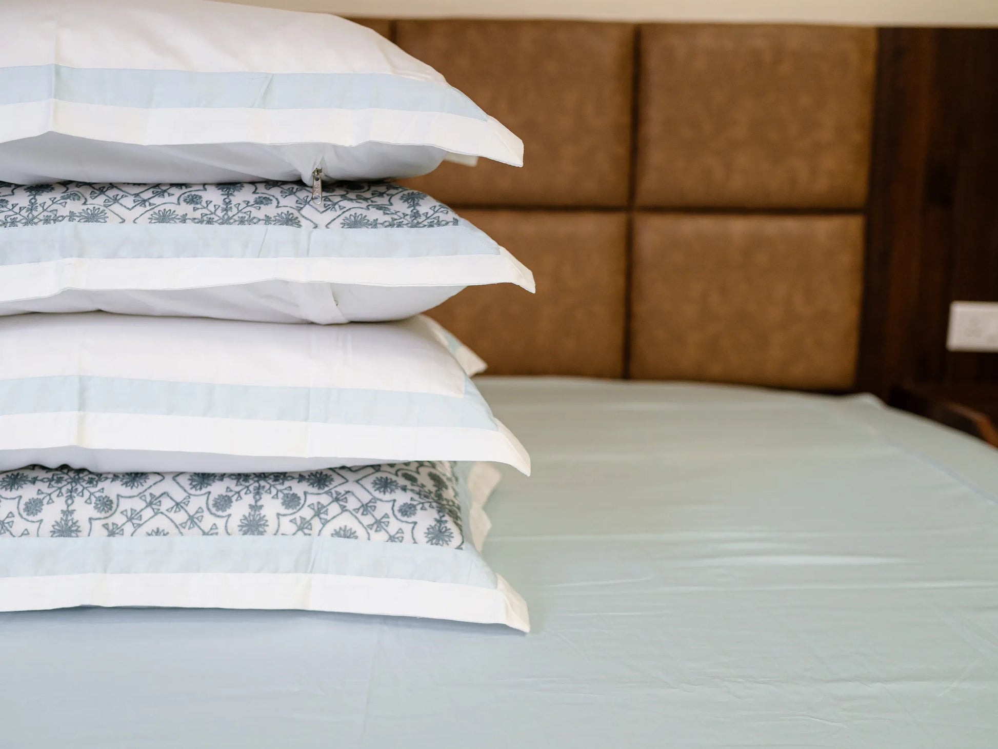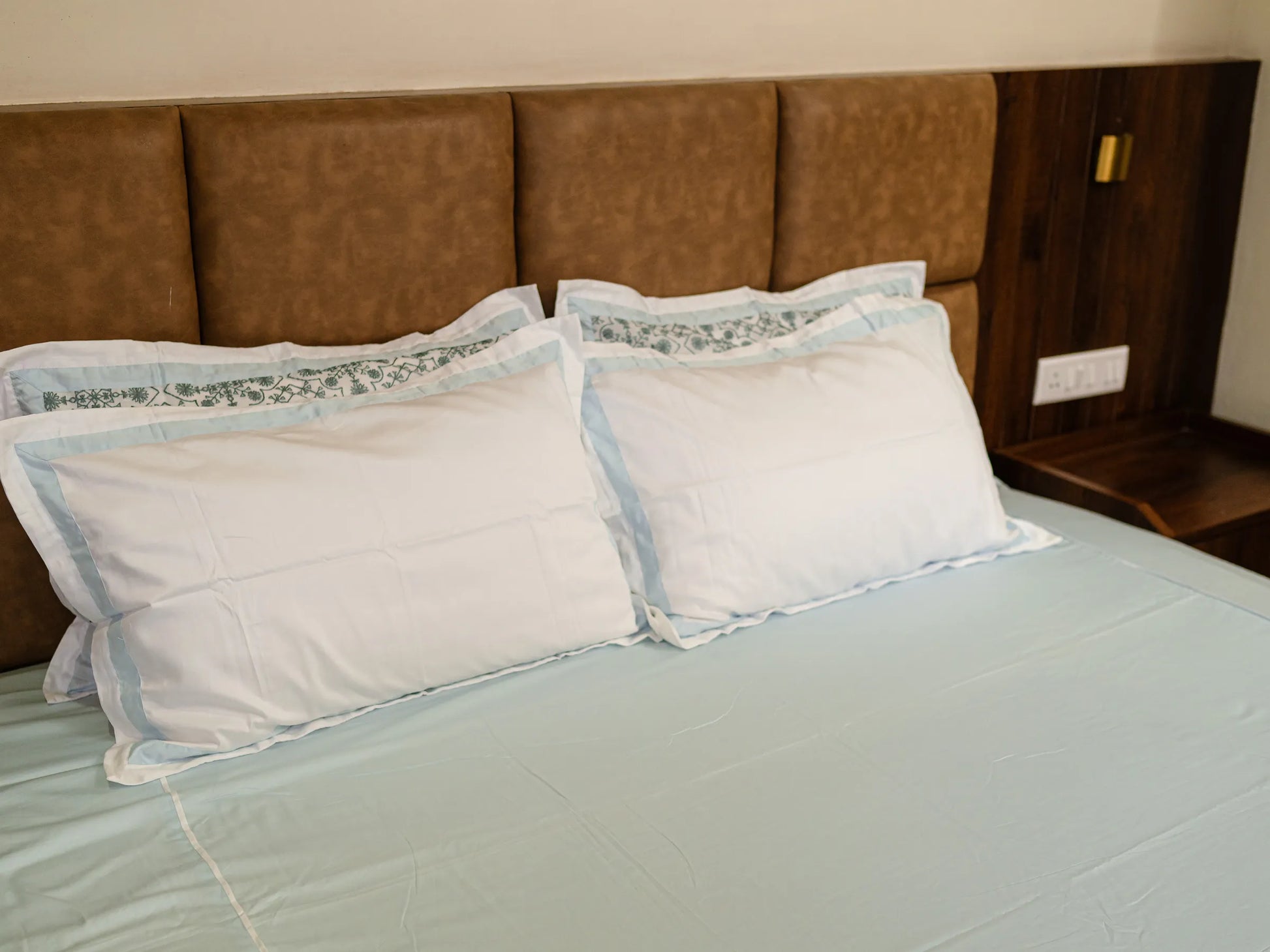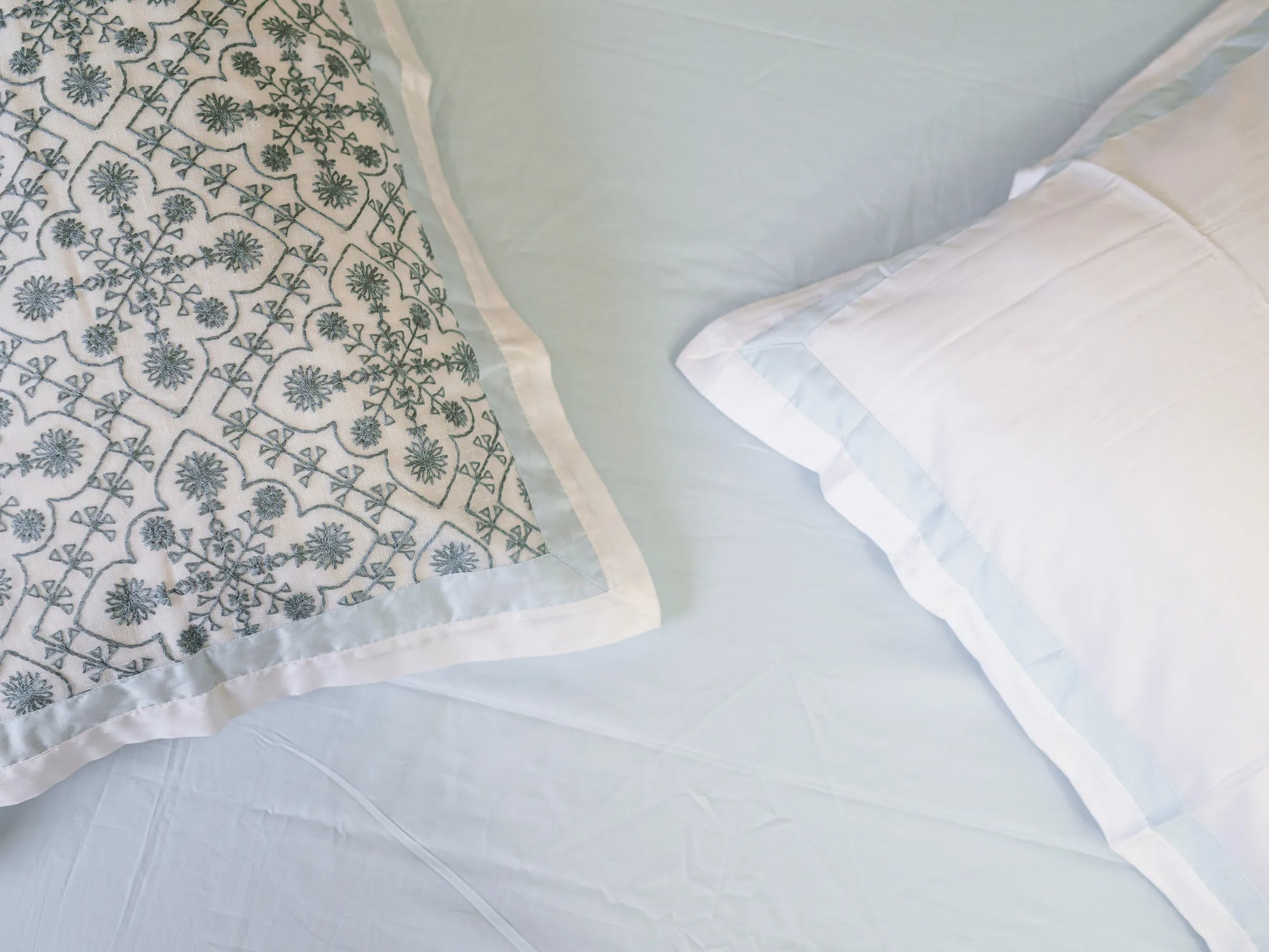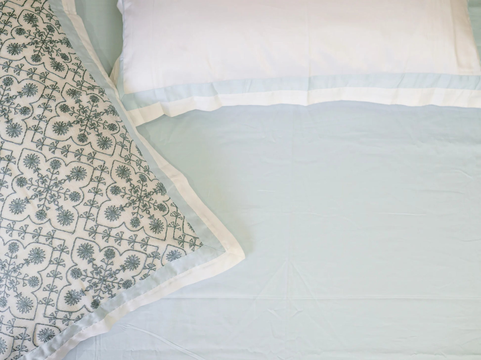 - Design - Plain Bedsheet & Embroidered Pillow Cover