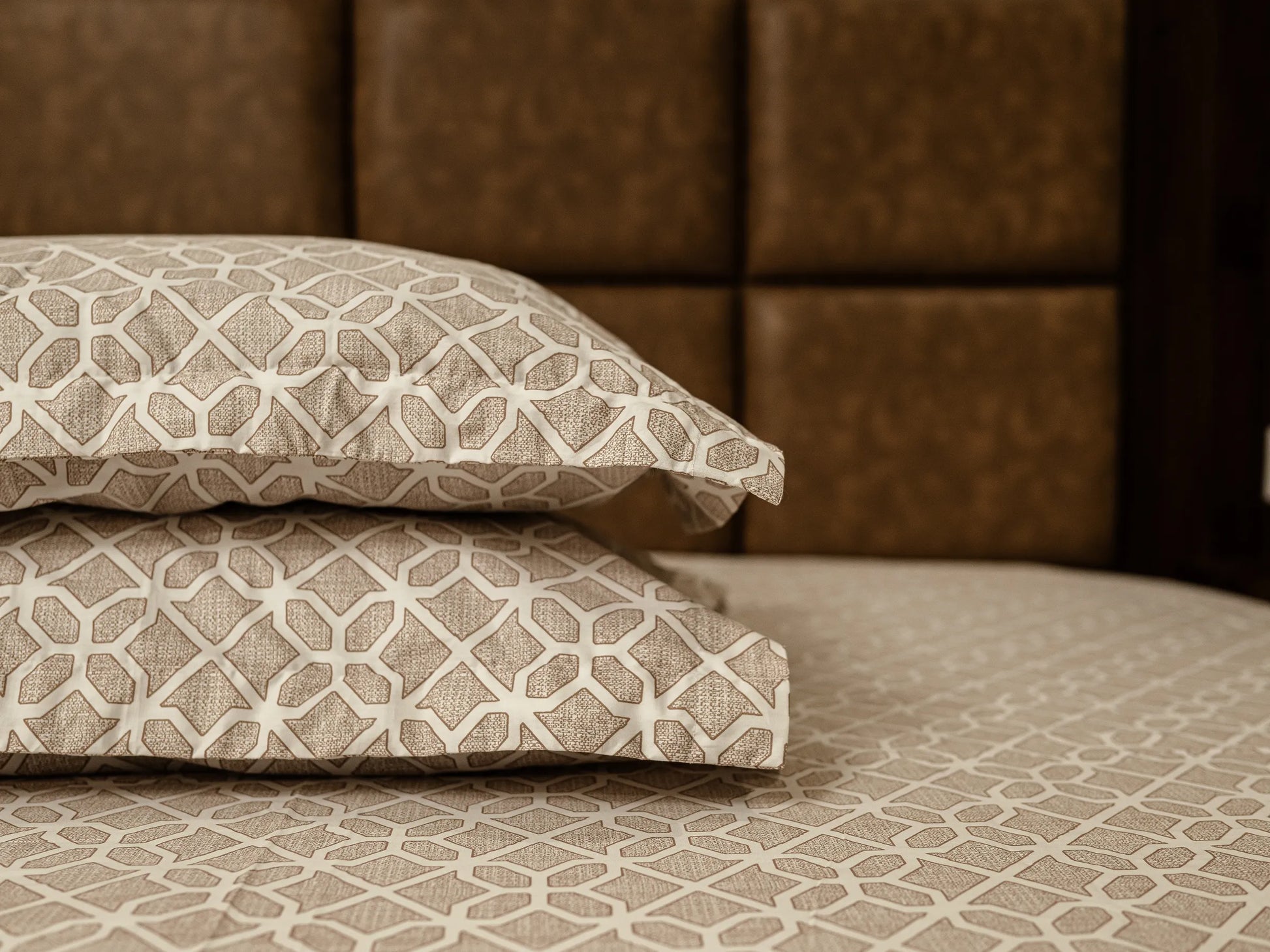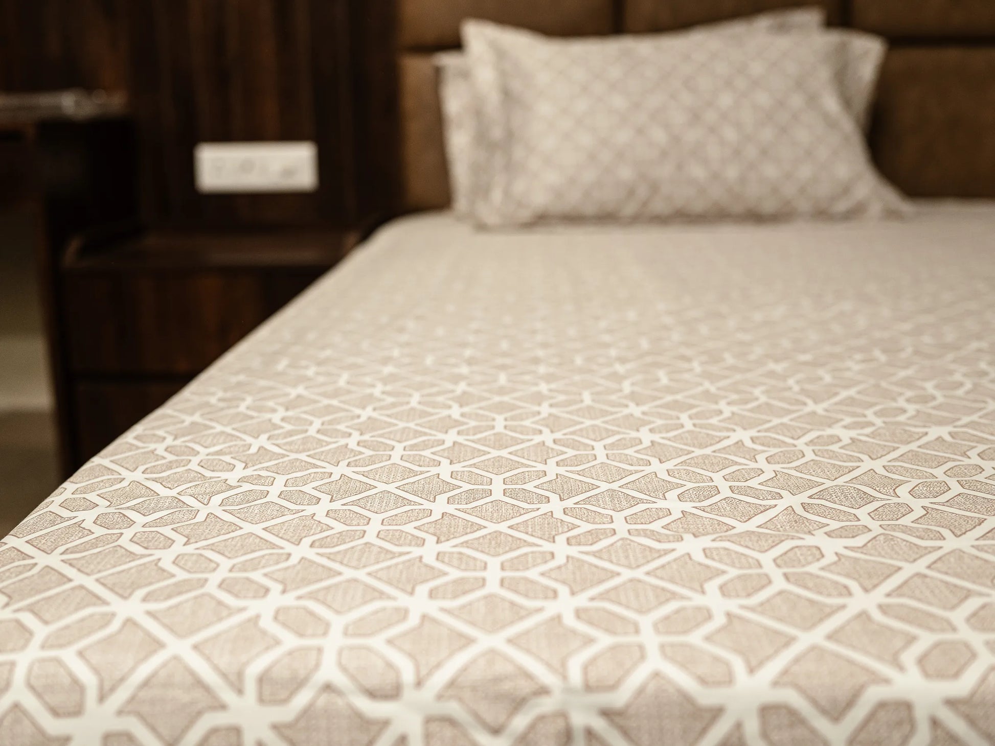 Indulge in the ultimate sleep sanctuary with this 100% organic cotton bedsheet, meticulously crafted with a 500 thread count for a silky-smooth, breathable finish. The sophisticated neutral beige palette and intricate geometric lattice design seamlessly blend timeless elegance with a modern aesthetic, elevating your bedroom into a luxury lifestyle retreat. Engineered for superior comfort and durability, this premium linen ensures a restful night’s sleep while adding a touch of sustainable refinement to your home decor.