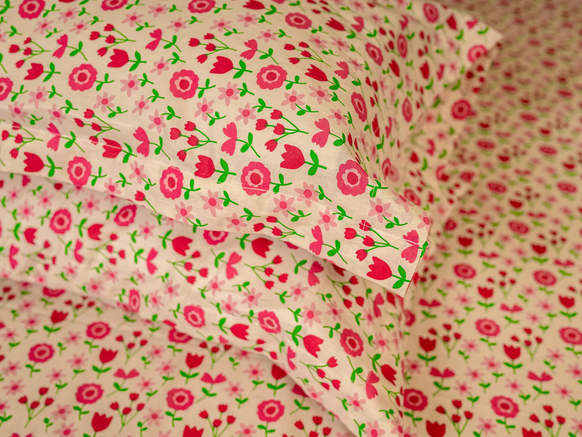 Experience the ultimate in refined living with this 100% organic cotton bedsheet, meticulously crafted with a 500 thread count for a silky-smooth, breathable finish. The delicate pink and red floral design adds a touch of timeless elegance to your bedroom, perfectly blending premium comfort with a sophisticated aesthetic. Designed for those who prioritize a luxury lifestyle, this set transforms your sleep space into a plush, eco-friendly sanctuary of pure relaxation.